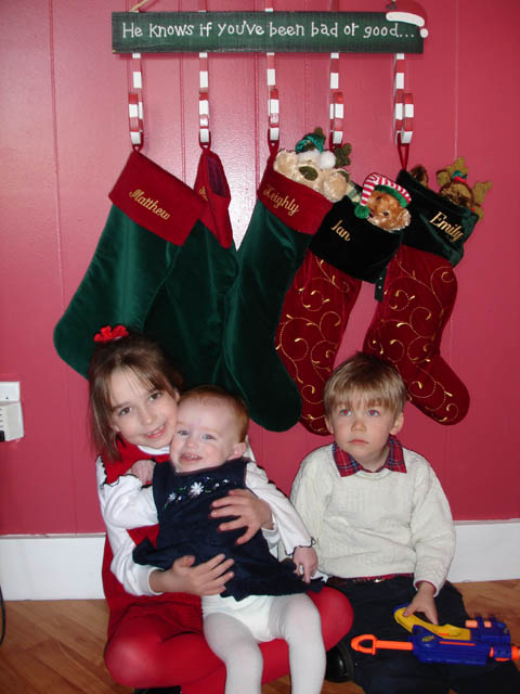 After recieving many great Christmas cards from friends and family, Janet and I decided to try and just snap a pic of the kids and send it out as a card. I have been fairly busy with work, and there was no way we would get to the Sears Portrait Studio like we normally do. Besides, how hard can it be to capture that priceless, timeless, heart-tugging picture of your own beautiful, perfect little angels?