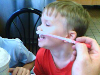There are a couple of display cases where you also see President Bill Clinton's Saxophone, President George Bush's inaguration boots, President Ronald Regan's cowboy hat, and other stuff. On one of the display cases and alarm was going off. Andrew said he saw a fellow in plain clothes speaking into his wrist, he must have been security. They take the Hall seriously, and expect everyone to respect the Presidents' presence (even if it was animatronics). I tried to get the kids excited by saying we were going to see the Presidents! We come in to a very wide theater with blue shimery curtains. We sit on the back row in hopes of getting out easier. The show starts with a movie based on portraits of Presdients set to a moving voice over. At one point, Keighly leaned over to me and said "Their mouths aren't moving." The movie ends with the two screens on either side opening to enhance the gravity of the Civil War. Eventually the movie screens are raised and all of the US Presidents are right there! They introduce each one, and then a few get to speak. George Washington starts, plus George W. Bush, as well as Abraham Lincoln. I took video of the whole thing. In the end, a rousing version of Battle Hymn of the Republic was piped in over the speakers. Everyone applauded, though it didn't seem as jubulant as I would have hoped. For the younger kids they found it a great time to nap and/or relax. For the older generation, we left misty eyed and were feeling very jingoistically patriotic.